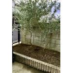 東側にはカツラの木とハーブ類が、西側にはオリーブの木が植わっていましたが手入れがされていない状況でした。