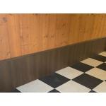 穴の修繕と、既存の木製壁の下部全体にメラミンパネルの腰壁を貼ることを提案しました。耐久性に優れ掃除もしやすいので、この先のメンテナンスも考えればコスパも高いことをご説明しました。