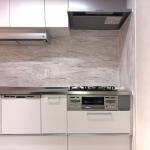 今回のリフォームでは、ご希望に沿って クリナップの白の食洗機付き「リクシア」 を採用し、スタイリッシュで都会的なキッチンを実現しました。また、レンジフードもスリムタイプにすることで、空間全体がより洗練された印象になっています。 キッチンパネルには 大理石模様 を選び、高級感と清潔感を演出。さらに、床材(CF)には 白・グレー・ブラックの四角いランダム模様 を採用し、都会的で個性が際立つお洒落なデザインに仕上げました。モノトーンのバランスが絶妙で、洗練された雰囲気の中にも遊び心を感じられる空間になっています。 全体的に、機能性とデザイン性を兼ね備えた、明るく快適なキッチンが完成しました。