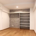 収納棚と洋服掛けのポールを新設することで、機能的で使いやすい収納スペースを確保。お洒落なグレー系のアクセントクロスを貼り替え、シンプルで落ち着いた印象の広々とした寝室に仕上げました。