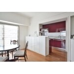壁の開口を拡げオープンに。カウンターが配膳にも便利で、収納量もアップしました。