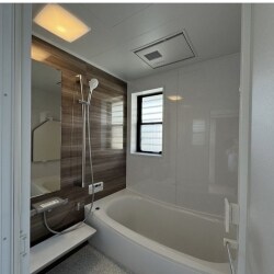 - 北欧調クロスとTOTOサザナで明るくお洒落な浴室空間に。