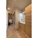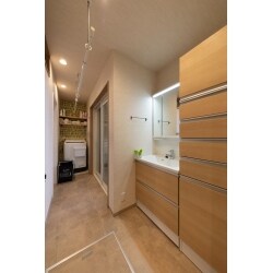 元々2Fに浴室と脱衣所があり、スペースの確保が難しかったので1Fへ移動させました。広々スペースが取れ、大容量の収納がセットになった洗面台を置けるようになり、収納不足が解消しました。