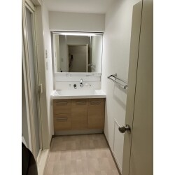 設備の老朽化が気になり、リフォームをご検討されていました。 洗面は気に入った商品があり、既存間口が940だが900の洗面を入れて40は埋める形でご希望されていました。 引き出し収納、三面鏡、ナチュラルの木目扉柄を希望されておりました。 また、クロスとCFの張り替えも合わせて行いたいとのことでした。 洗濯機の上にシンプルな感じの開き扉収納を付け、洗濯パンも交換したいとのことでした。