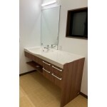 パナソニックのLクラス、ラシスをご提案いたしました。ちょっとした家事にまで使えるような大きさのカウンターがあり、タオルや眼鏡、化粧品などのちょい置きも安心です。汚れや衝撃に強い人造大理石製でお掃除も手軽になりました。今まで見える所に置いていたものは引き出し収納でスッキリ片付けることができます。鏡や照明を自分好みに組み合わせて、一番思い入れの強い特別な場所になりました。