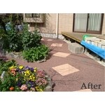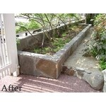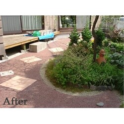 土と砂利では味気のなかったお庭を、すっきり、華やかに仕上ることを心掛けました。花壇等、残す部分との調和を考えながら、広い庭の中での水公配に気を使い、快適に お使い頂けるよう配慮しました。