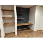 水まわりメーカーのショールームに同行させていただき、最終的にクリナップのステディアをお選びいただきました。 元和室の押し入れをワークスペースに造作し、リビングも開放感が出るように筋交を現し仕上げに。 断熱対策にはインナーサッシを設置しています。