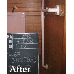 介護士の方と打合せをしながら各所決定していきましたが、一番大切なのはお客様が一番使い安い位置に取り付けていくことなので、 場所決めは慎重に行いました。マニュアルどおりの取付位置で良いという訳ではありません。体の状況は人それぞれです。その人に合った手摺位置を見つけることが 何よりも重要です。 工事内容 トイレ・浴室: TOTO 手摺部材 和室: 大建工業 手摺部材 外部階段: TOEX グリップライン
