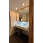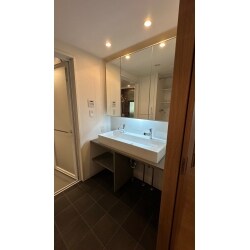 水まわり設備の全交換、合わせて壁紙の張り替えとデスクの造作もお願いしたいとのご要望でした。 特に洗面台は2人が同時に使えるような造作のものにしたいとご希望をいただいておりました。