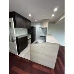 ご希望の「対面キッチン」に交換されました。ダークブラウンのシックなデザインで無垢のフローリングと合いとてもおしゃれです。対面になったことでリビングを広く見渡すことができます。