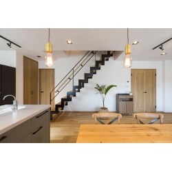 お部屋の雰囲気が明るくスッキリしているので、スケルトンのイナズマ階段としました。アイアン+木製の段板で、より空間と調和するように。いいアクセントにもなりました。
