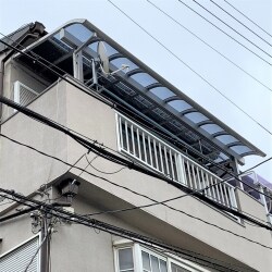 バルコニーに屋根が古くなり、汚れや破損個所があるため撤去したい。