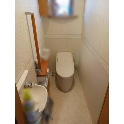 既設トイレ後が目立つのが嫌なので、床のみの貼替をご希望されました。
