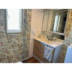 脱衣所の窓側の壁紙が結露により剥がれているのが確認できました。