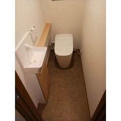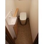 既設の埋め込み手洗い器を撤去をし、下地、内装工事をし、カウンター付き手洗い器とタンクレストイレを設置いたしました!