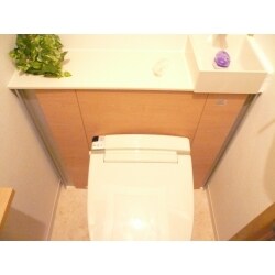 手の届きにくい便器奥をキャビネットで隠して、カンタンお掃除。キャビネットの両サイドが収納スペースになっているので、床に置くお掃除道具も収納でき見た目もスッキリ。トイレットペーパーも入りますよ。 タンクレスではないので価格も抑えつつ、収納と手洗い場もつけることができるのでお勧めの商品です!