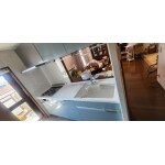 クリナップのステディアを採用させて頂きました。ステンレスを使ったエコキャビネットなので綺麗が長持ちします。開放的なキッチンをご希望でしたので、元々ついている吊り戸棚を外す予定でしたが、収納も確保するため、昇降式のハンドムーブを取り付けました。小柄な奥様も使いやすい吊り戸棚になりました。