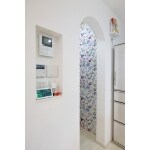 キッチン横に、収納に便利なパントリーを設置。 R開口&鮮やかなクロスがおしゃれで素敵な仕上がりに。