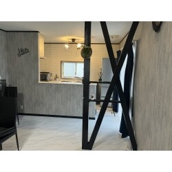 壁に構造上撤去できない筋交いがあったので、補強を加えて飾り棚に大変身しました。