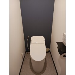 スリムデザインの便器にすることで、お掃除が楽になりました。 吊戸棚を撤去して壁紙をアクセントカラーにすることで、奥行を感じられるようになりました。