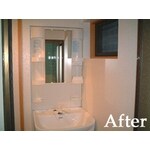 間取りを変更し、トイレスペースを広く確保しました。構造壁以外はほとんど解体して施工していきました。トイレ・洗面・浴室・リビングへの扉が集中する為、干渉を避ける様々な工夫をしてあります。 洗面台を壁に埋め込んだのもポイントです。 (値段はキッチン,水廻り・内装工事など全工事含) 工事内容 トイレ:INAX アメージュ4.組み合わせ便器 洗面台:INAX オフト 建材:大建工業Rシリーズ