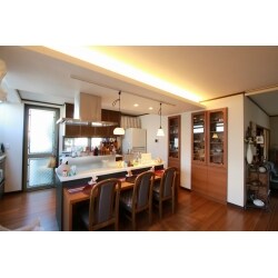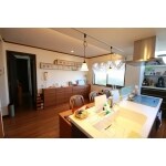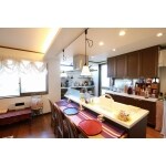 アイランドキッチンにすることで明るさと開放感が際立ちます。ダイニングテーブルの代わりに、キッチン前にカウンターを置くことでダイニングのスペースも広がりました。お料理の上げ下げもカウンター越しにできますので、お食事の際の動作も最小限で済むのが嬉しいですね!
