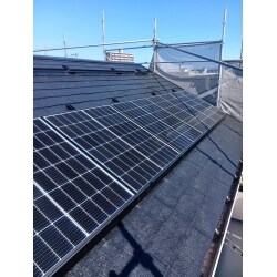 電気、ガス、水等は、生涯コストという考え方からすると 生活する以上必要なコストです。 このコストを下げるには、使わないように事が大切です。 それが、太陽光発電での電気の自給自足の発想です。 また、今回は、屋根のコーティングもかねて塗装後に設置をさせて頂きました。 同時に行う事で予算を抑えれる部分もあります。
