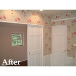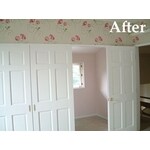 モダンインテリアにこだわりを持ってみえたので、ご要望に沿うよう、床材と建具をチョイスしました。 メインとなるクロスを決めて頂いてから、全ての材料の選定するという段取りで進めていきました。 クロスを決めて頂いてからはスピーディに段取りできました。 クロスの花の模様が窓から見える外の緑を一層引き立たせて見えます。 工事内容 和・洋室(6帖) →洋室+ウォークインクローゼット 上記工事に関わる 解体・造作・内装・電気・空調・照明工事