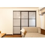 スタイリッシュなグレーガラスの建具で一体空間に