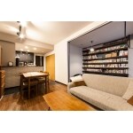 リビング横の洋室が開き戸で壁があるためにリビングも狭く感じてしまうので、一体で使えるようにしたい。また、本が大量にあるので大きな本棚を設置したい。