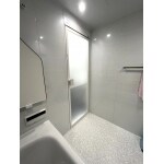 浴室床は、乾きやすくてカビにくい素材にて、汚れの発生しにくい商品をお選びいただきました。また、パネルや浴槽のお色をホワイトに統一いただくことで明るくひろびろとした浴室になられました。
