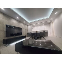 建物全体のホテルライクな内装に仕上げました。 和室もすべて無くし、白と黒を基調とし、間接照明をうまく利用した内装になっております。