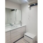 収納力を高めつつ、スタイリッシュな印象の脱衣所にしたい。