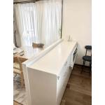 思い切ったキッチンの縮小で生まれたのは、想像以上の開放感。 冷蔵庫、シンク、コンロを一直線に結ぶことで、 料理の動線は格段にスムーズになりました。 ナチュラルカラーのフローリングと白で統一された壁紙。 光をたっぷりと取り込み、LDK全体を明るい空間へと変貌させました。