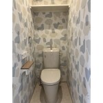 ブルーのクロスをアクセントにしたシックなトイレ