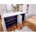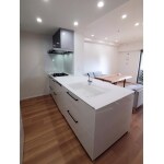築20年近く経つマンションにお住まいのお客様より、水廻りのリフォームのご相談を頂きました。 ご相談頂く際にショールームへ足を運ばれており、設備機器はTOTOにて決定。 キッチンは特にクリスタルカウンターが気に入った、とのことでクラッソを採用。 吊戸棚による圧迫感があるキッチンからオープンなキッチンをご希望だった為、吊戸棚を付けず、フラット対面 型のプランに。 コンロ前の壁も無くしたい、とのことでしたが、そこはPSがあり壁を取り払うことが出来ないので、一部をリビ ング側への可動棚にすることをご提案。 キッチンのリビング側収納キャビネットと合わせて収納を充実させ、キッチンカウンターをスッキリさせたい、 というご要望も実現しました。
