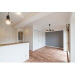 「一体感のあるリビングダイニングとキッチン」というご要望にお応えし、まずはキッチン前面の垂れ壁と袖壁を解体し、オープンタイプの開放的な空間を実現しました。リビングダイニングは、白の壁紙で統一しつつ、グレーのポイントクロスやブラックのインダストリーな照明器具でモダンなアクセントを加えました。これにより、全体的に明るく、引き締まった印象の空間が完成しました。 さらに、リビング入り口にはヴィンテージ調のドアを採用し、上品で洗練された雰囲気を演出。床にはチェリー柄の高機能フローリングを新調し、耐久性とデザイン性を両立させています。また、和室との間仕切りには引き戸を採用。閉じることでリビングの独立感を高め、開けることで広々とした空間を楽しめるよう工夫しました。和室も畳の表替えや壁紙、ふすまの貼り替えを行い、リビングと調和する空間に仕上げています。 洗面所はタイル張りの造作洗面化粧台を施工し、限られたスペースでもデザイン性を高める工夫を施しました。空間全体を活かしたご提案で、快適で上質な住空間を実現しました。