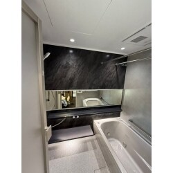 大きいユニットバスと高級感のある壁面を採用しました。ミラー大きさや水栓にもこだわり、ホテルライク空間としました。
