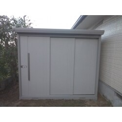 扉は上部吊りローラー方式なので、雨水やゴミの影響によるトラブルが少なく、耐久性に優れ、軽く開閉しやすいです。収納棚も充実しており、大きく開口するので多様な使い方ができる物置です。
