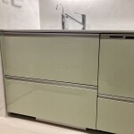 引き出しになって、収納量がかなりアップしました。タイルの壁からキッチンパネルになり清掃性も向上しました。