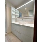 洗面台の交換に合わせて、クロス床CF工事も行っています。