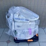 既設はTOTOのピュアレストMRで左にレバーハンドルがありました。ご主人様は座ったまま右手で流していたとのことです。洗浄便座はオート便器洗浄のない袖リモコンタイプでした。