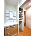 洗面小物収納が隠れる3面鏡の洗面化粧台へ