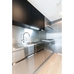 ステンレス×ブラックのデザインがスタイリッシュなキッチンに。