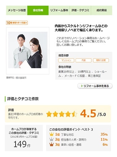 ホームプロでは、お客さまの評価・クチコミ情報やご紹介会社の施工事例などを公開しております。